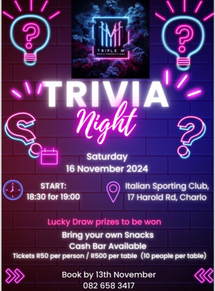 Join for a fun Social evening: 16 November 18h30.  Book a table of 10.